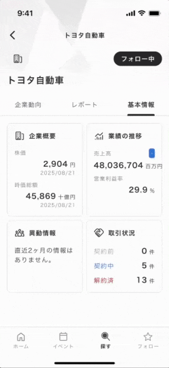 面会相手の企業情報や社内の取引状況などを、移動の合間にチェック